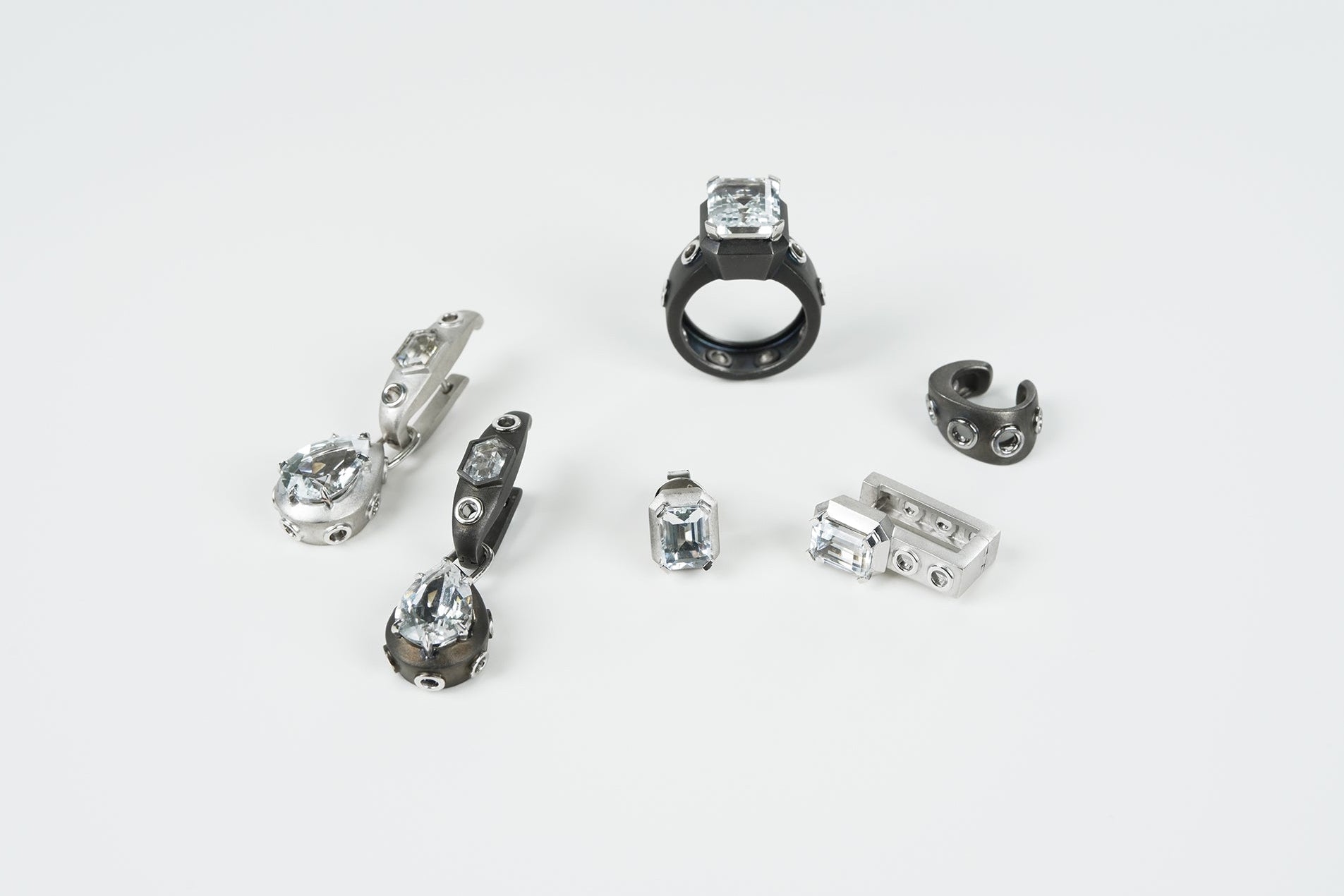 Eyelet Collection 設計師: Mssli Collection 設計概念:活出真我,龐克風格配襯經典孔眼,為奢華感的配飾增添一份時尚的玩味。作品採用925銀鍍銠,經由噴砂工藝打造出仿若皮革的獨特肌理。結合精湛的鏤空技術,賦予飾品輕盈體感,既型格又舒適。