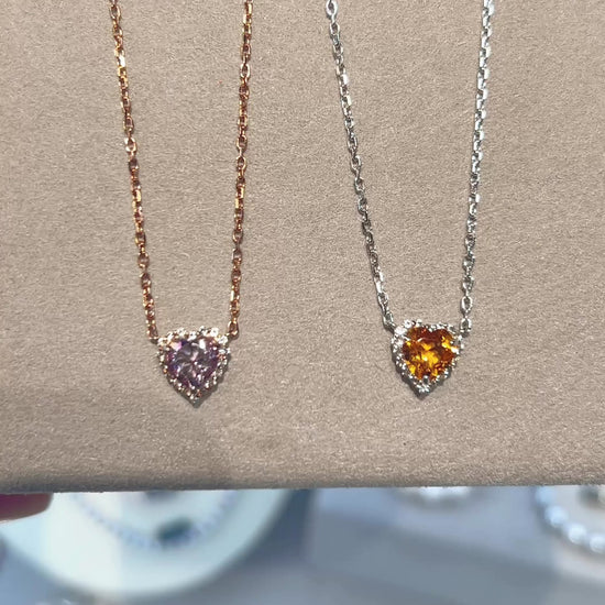 Dolly-Heart Collection純淨透亮的紫水晶及黃水晶,其心形的切工精細及對稱。主石周邊鑲嵌白色托帕石,更顯出主石的豔麗的色彩及其心形切割的輪廓。